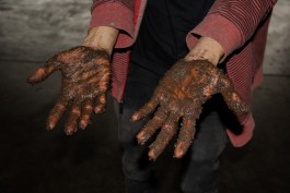 “Comparto con J.G. situaciones a veces inverosímiles. Mudanzas que nunca terminan, camiones que transportan sus objetos personales como si fueran la utilería de una puesta en escena. Es algo así como una figura de acción (esos muñecos articulados made in china), pero del subdesarrollo. Esto pensé cuando me mostró su mochila, cargada de tierra y escombros. “Estoy juntando de la calle, es para construir una isla”.