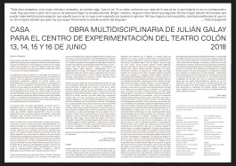"Casa" (2016 — 2018) es una obra multidisciplinaria compuesta especialmente para el Centro de Experimentación del Teatro Colón que reflexiona sobre la percepción del tiempo y la pérdida del lenguaje.